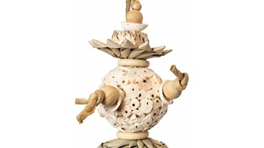 Materiál: sola dřevo, mahagonové lusky, pletené prvky
